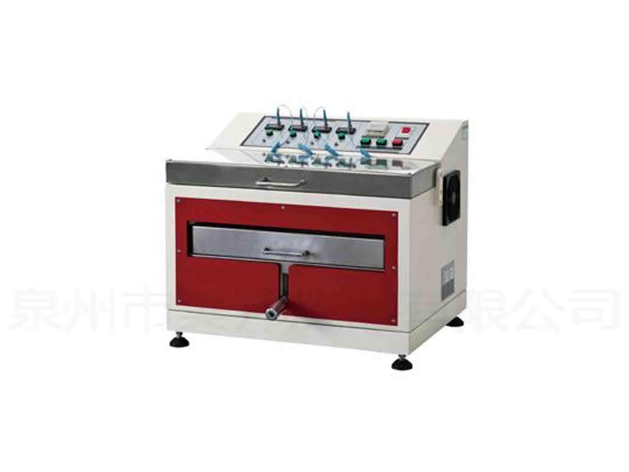 本機(jī)系針對(duì)如皮革、人造皮及布料等鞋面材料在有水的環(huán)境下,其耐彎折的特性,以作為材料研發(fā),防水加工及質(zhì)量改善的參考。