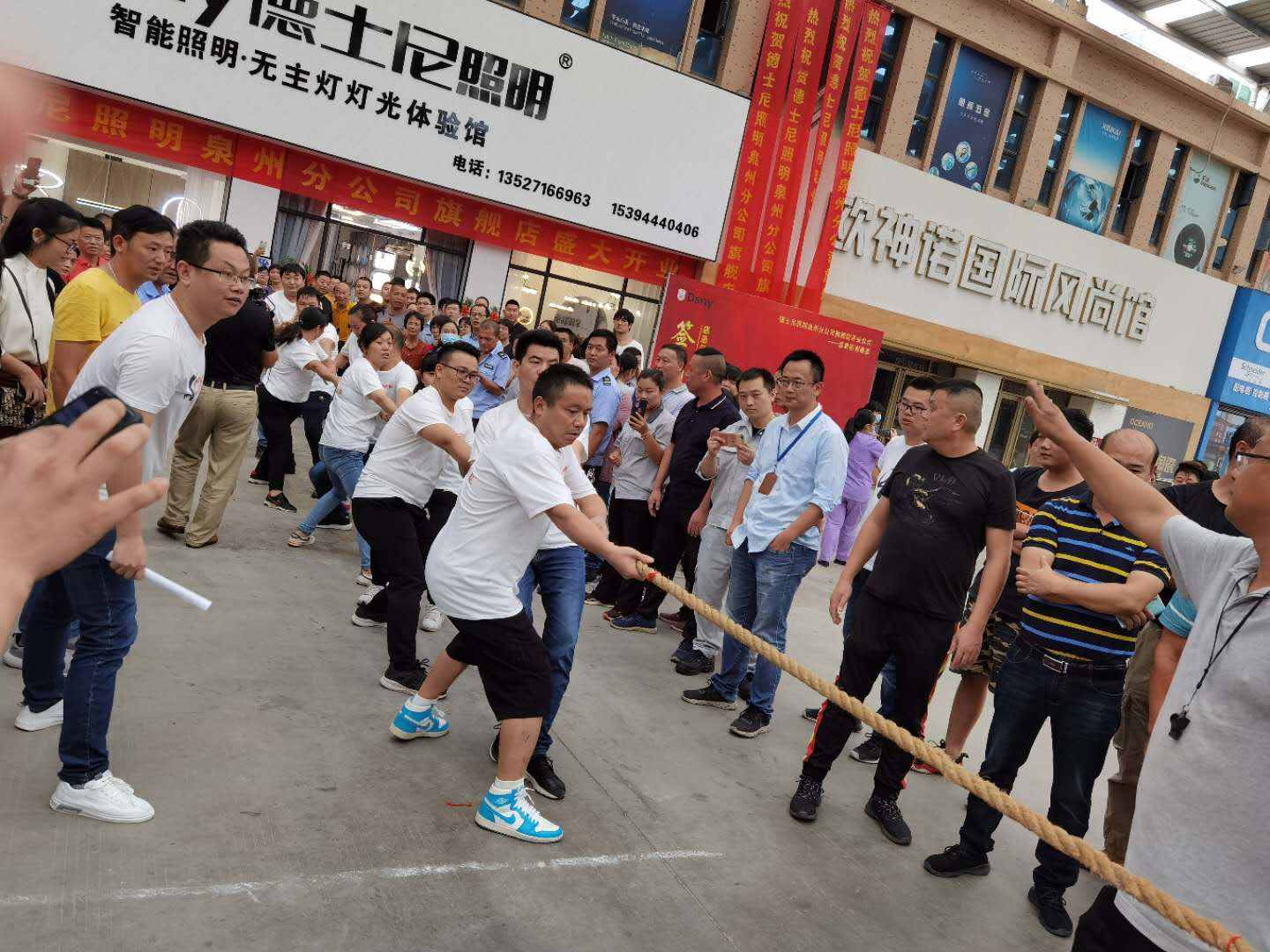 一聲哨響,劍拔弩張,雙方隊員低蹲身子,奮力地將繩子往自己的方向拽