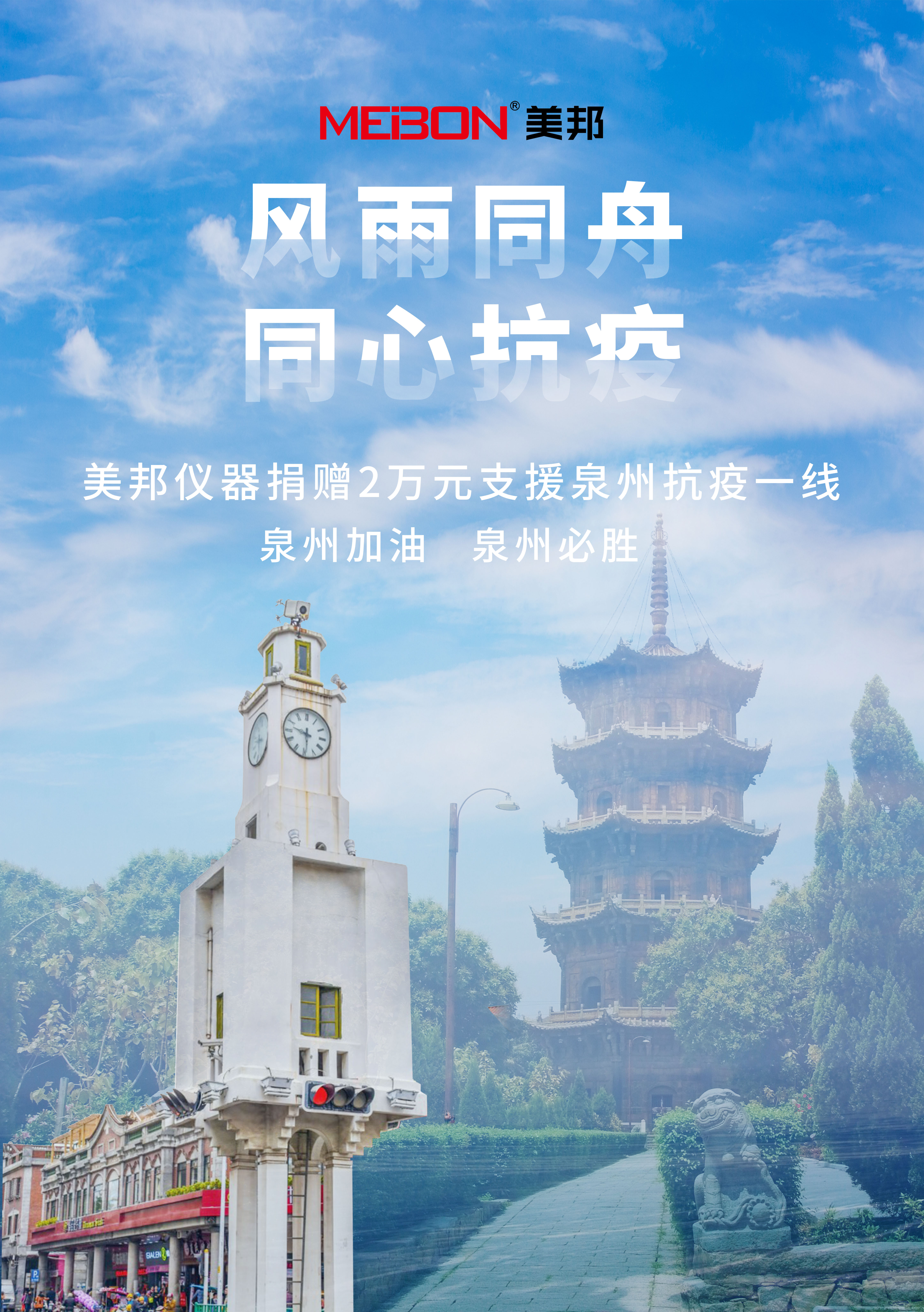 2022年3月18日,美邦儀器向泉州南安市霞美鎮(zhèn)人民政府支援捐款2萬元,助力泉州南安市霞美鎮(zhèn)疫情防控工作,為疫情防控盡一份綿薄之力!