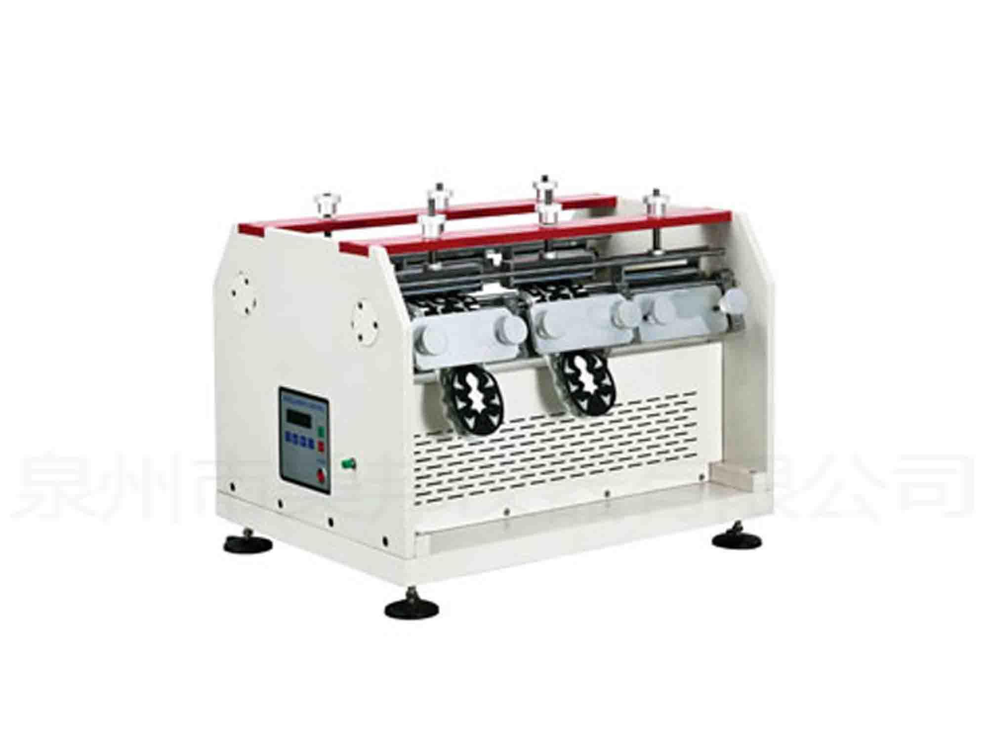 This machine is used for right angle bending test of rubber products, soles, PU and other materials. The test piece is constantly telescopic through the machine, after bending, it will observe the decrement, damage and rupture degree, and has the power off memory function.