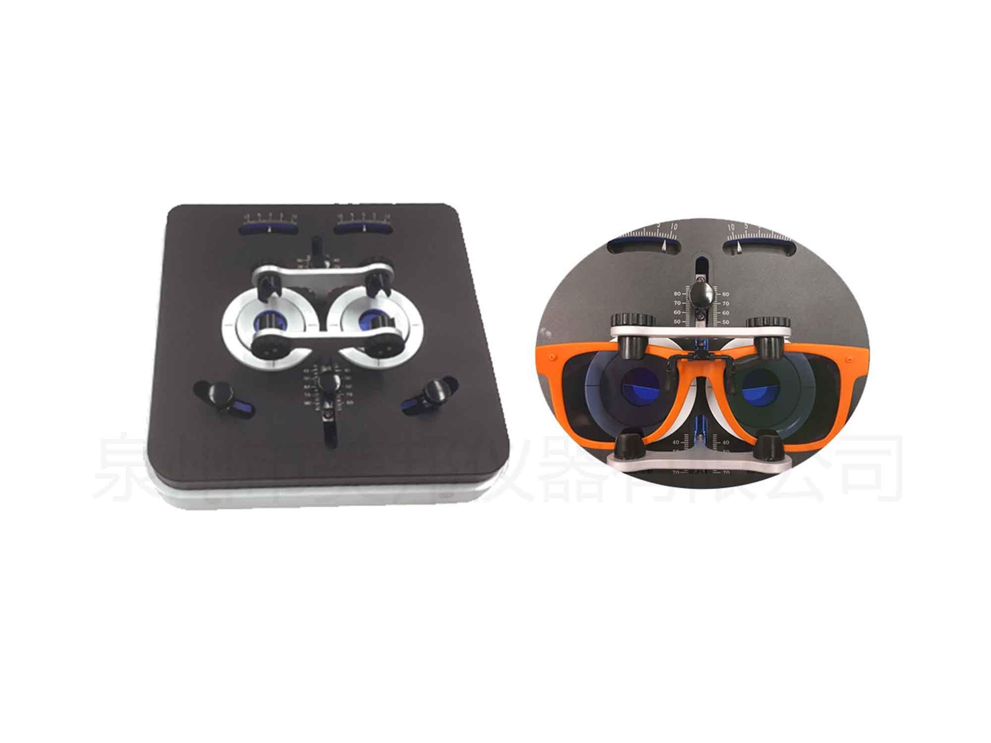 偏振軸位測試儀是根據(jù)國家標準GB 10810.3和QB 2659-2004機動車駕駛員專用眼鏡偏振光鏡片的偏振方向測試要求設(shè)計的試驗用儀器;該儀器是將一對偏振片切割成其偏振方向與水平方向的夾角分別為±3°,然后組成分視區(qū)偏振器的上下半面,貼合在玻璃片上,組成半蔭式偏振片,測量眼鏡片的偏振方向,用于測定偏振鏡片的軸位偏差。