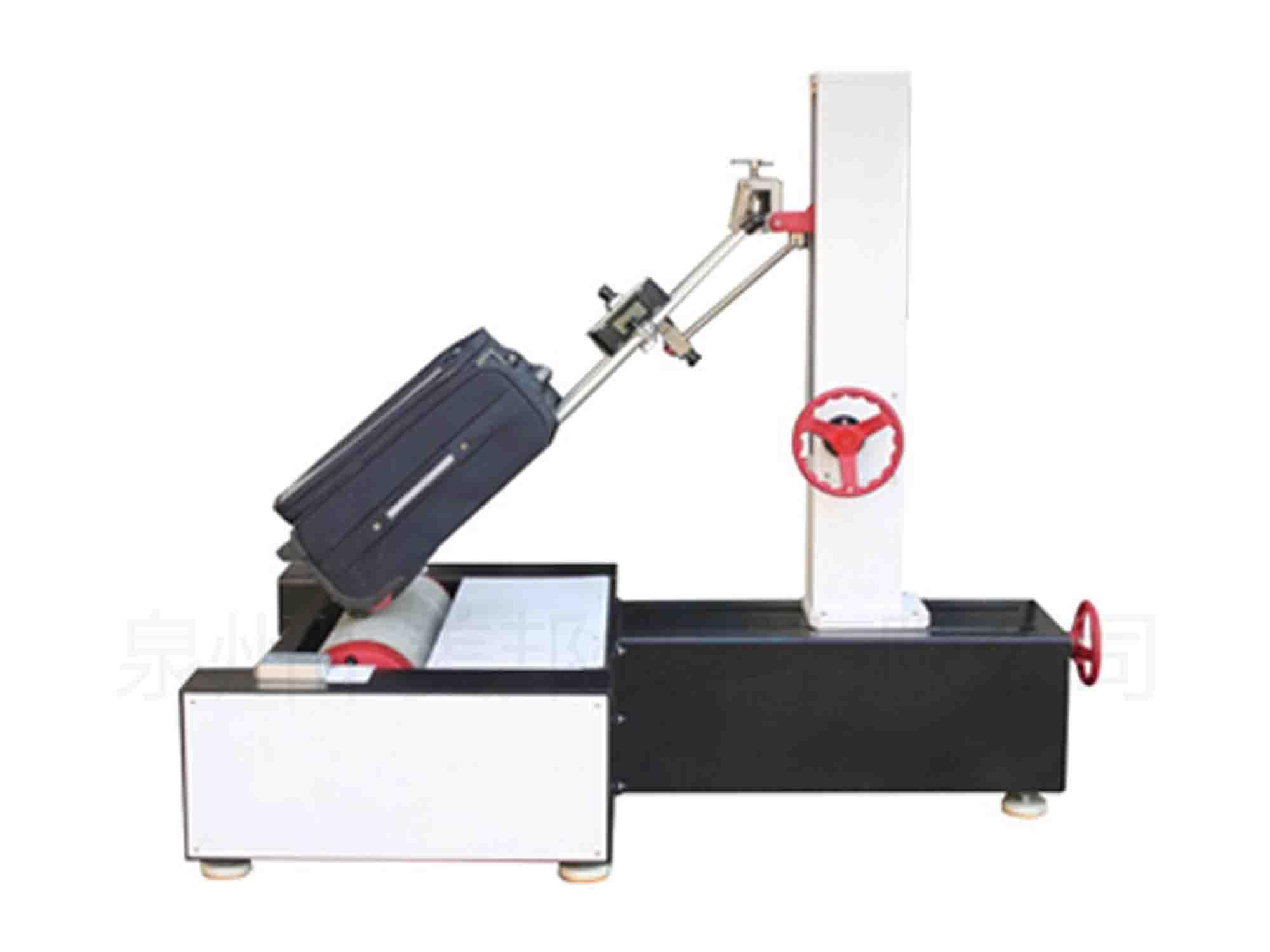 The testing machine for testing rod boxes, with wheels with a trolley bag while walking the whole structure, go round rod wear degree and seismic damage of suitcase and deformation. The results of the test can be improved for reference.