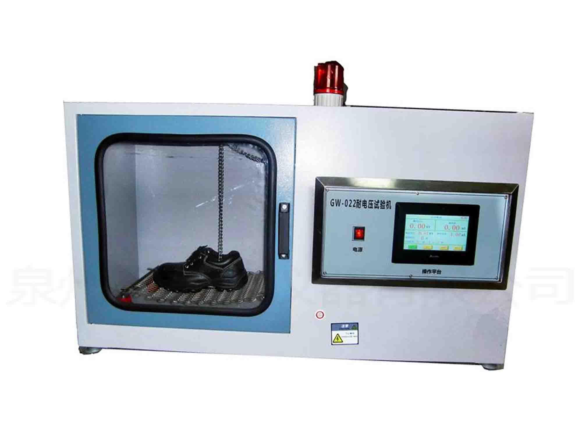 This machine is used to test shoe sole material or insulation shoe material. After giving certain voltage value and continuing for a specific time, it determines its voltage withstanding characteristic by the voltage value it can withstand.